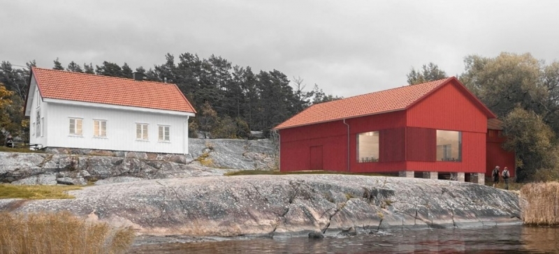 Slik vil det nye naustet med oppbevaring av kano og utstyr se ut. Foto: Line Solgaard Arkitekter