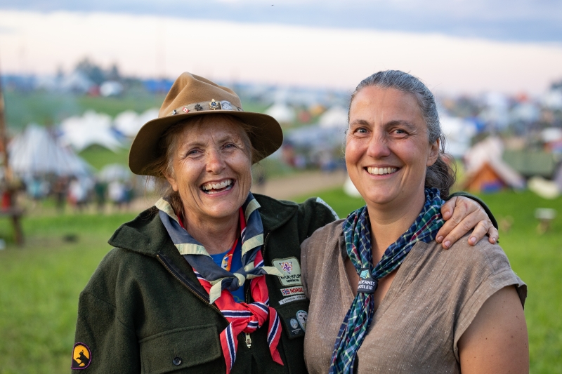 Blide ledere fra hvert sitt forbund på Speidernes landsleir 2025. Foto: Helene Moe Slinning.
