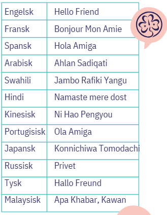 - Spør gruppen om noen vet hvordan man sier «Hei, venn» på et annet språk, og be dem dele det.