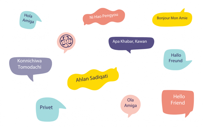 Speiderne lærer å si "Hei venn" på flere språk og reflekterer over ulike språk speidere har rundt om i verden.